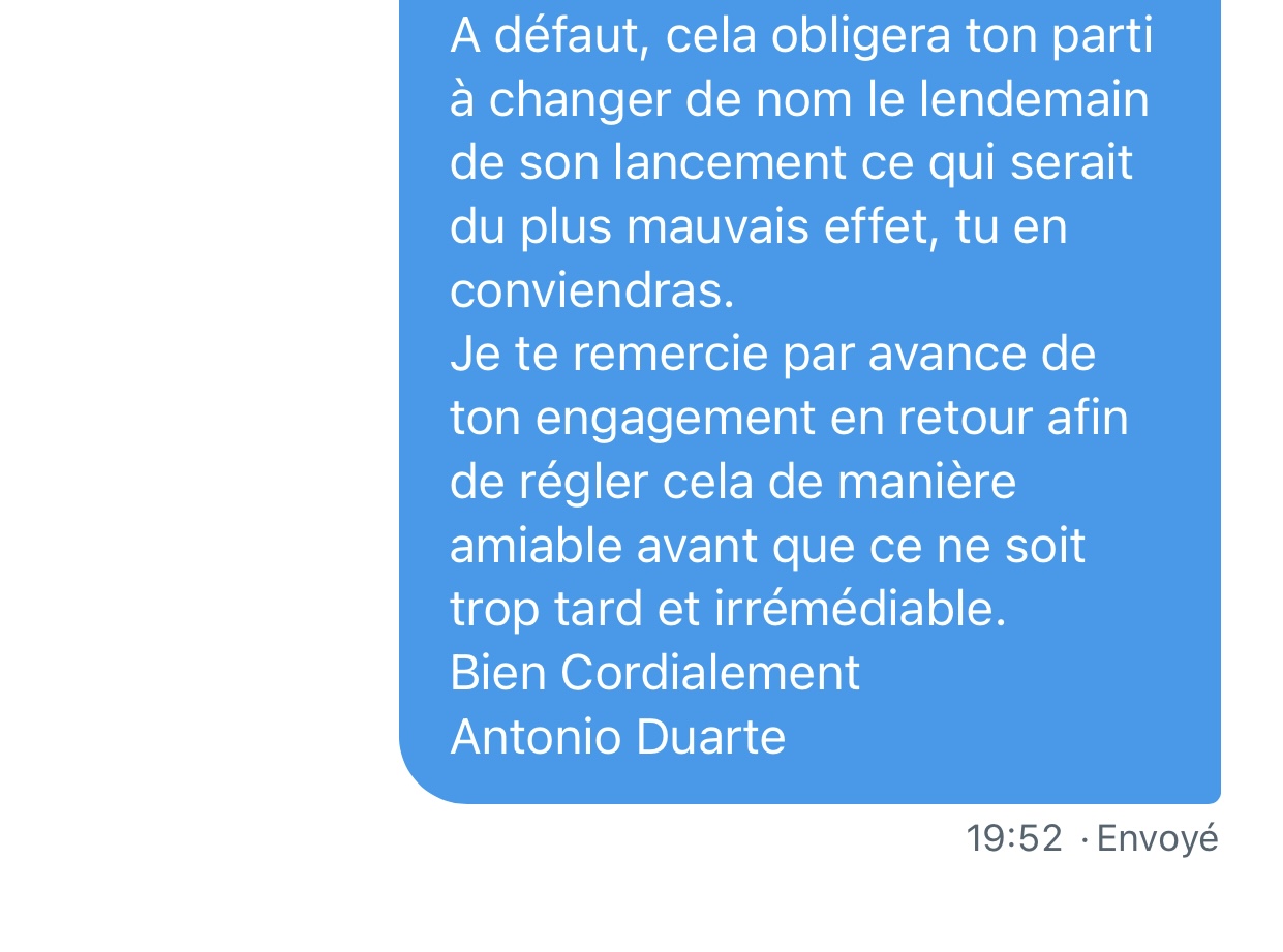 Antonio DUARTE, Président de LES ECOLOGISTES salue l’accord amiable obtenu avec le MEP, qui se met en accord avec ses valeurs fraternelles entre mouvements écologistes. L’urgence climatique doit réunir tous les écologistes au lieu de les opposer sur des contentieux de droit des marques.