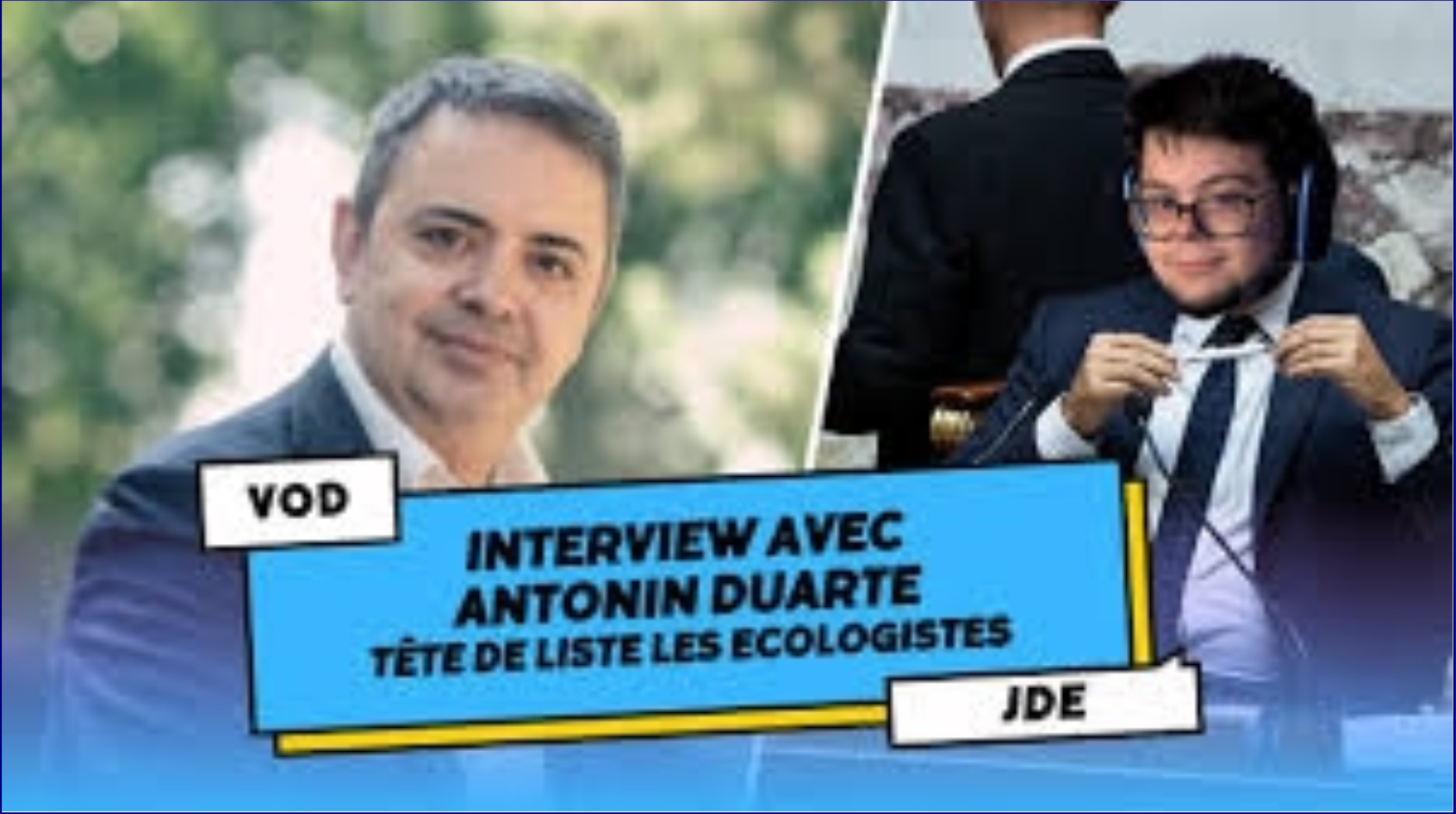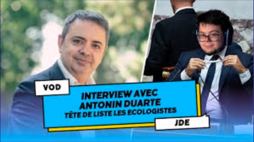 Hugo au Perchoir : Interview vidéo de 120′ de Antonin DUARTE, Tête de Liste Les Ecologistes pour les élections Européennes 2024 par Hugo Chevallier en live sur Twitch le 9 mai 2024 et en replay sur Youtube.